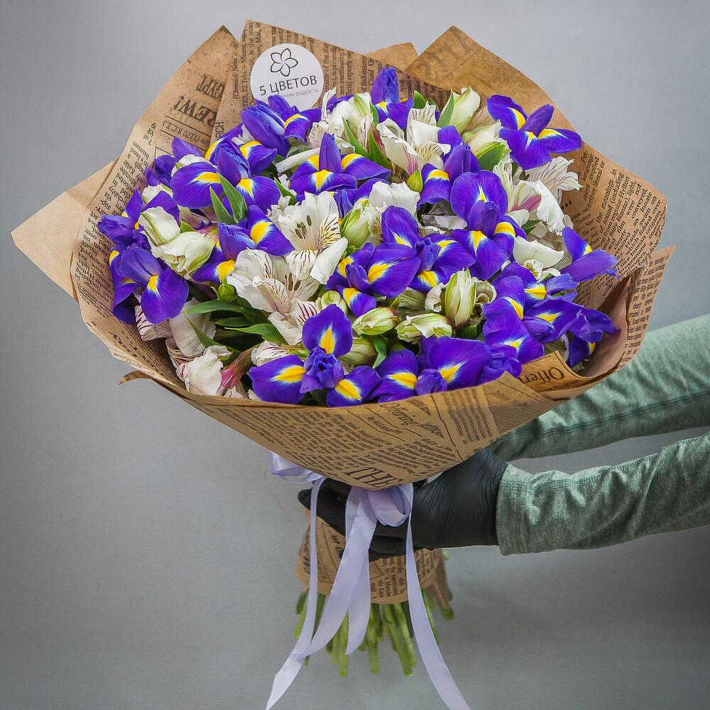 Букет из ирисов и альстромерии