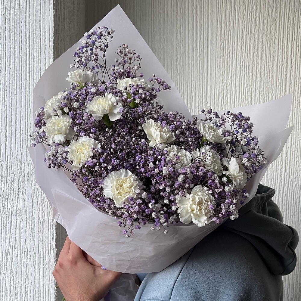 Гвоздики, Кустовые розы, Пионовидные розы, Розы