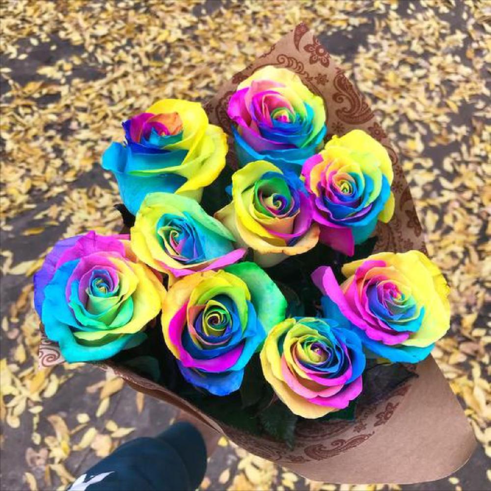 9 радужных роз