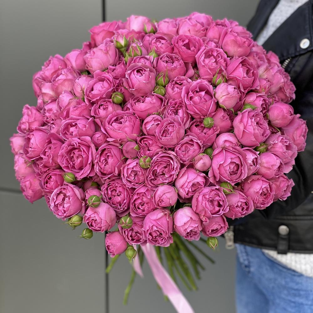 Оформление лента атласная – 1 шт. кустовая пионовидная роза misty bubbles – 35 шт.