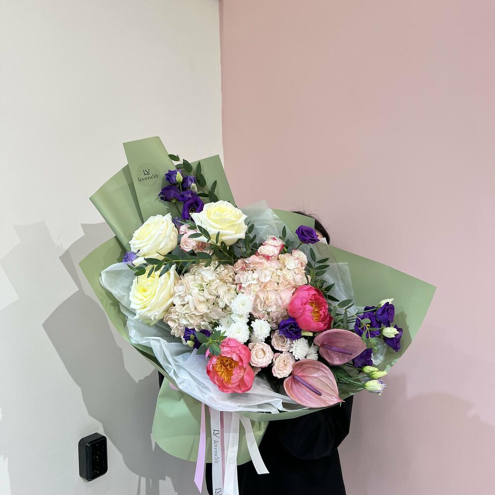 Гвоздики, Кустовые розы, Лизиантусы, Пионовидные розы, Розы