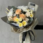 Все любимые цветы в одном букете – голландские розы, хризантемы и розы SPRAY в букете «EURO