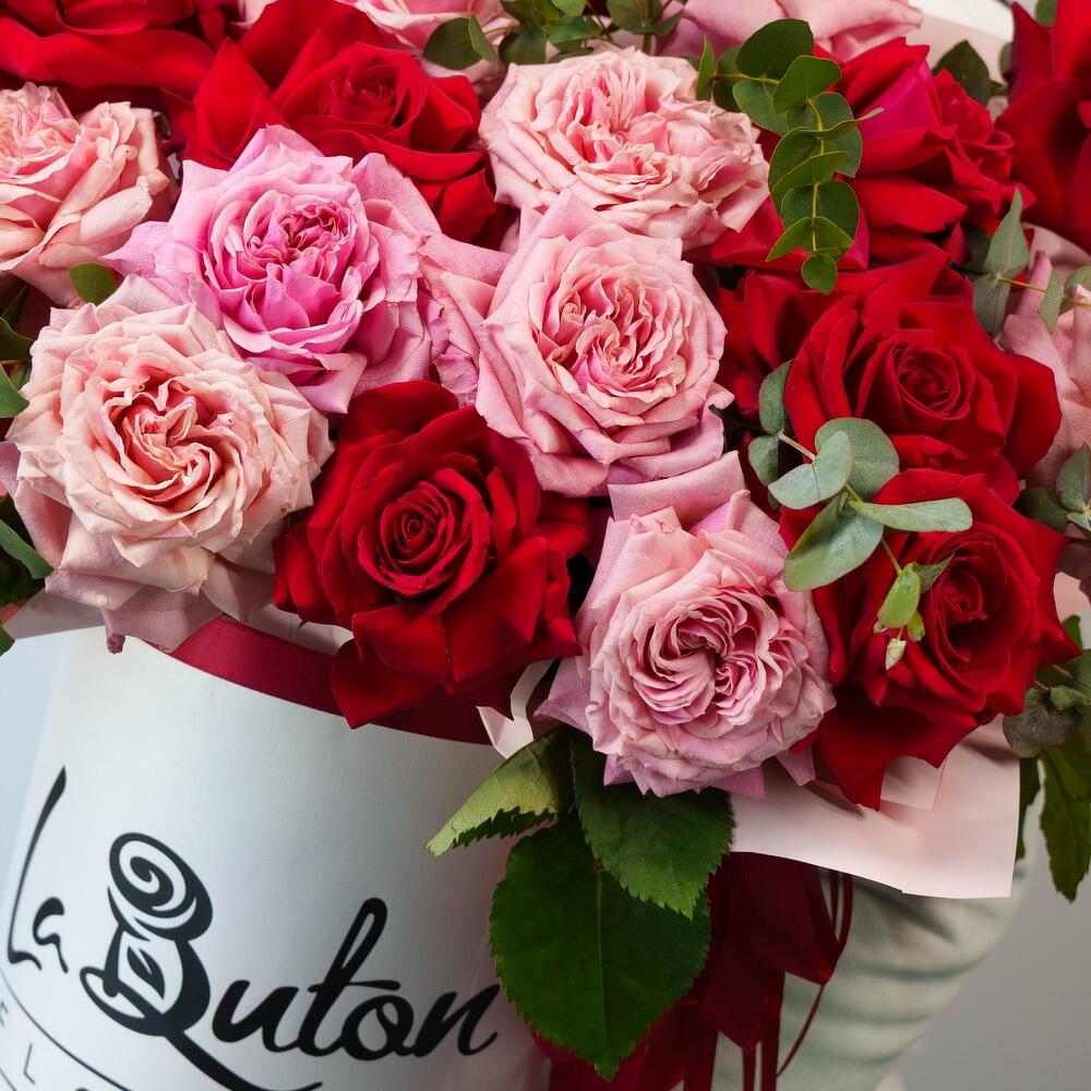 Розы с французским раскрытием с добавлением эвкалипта