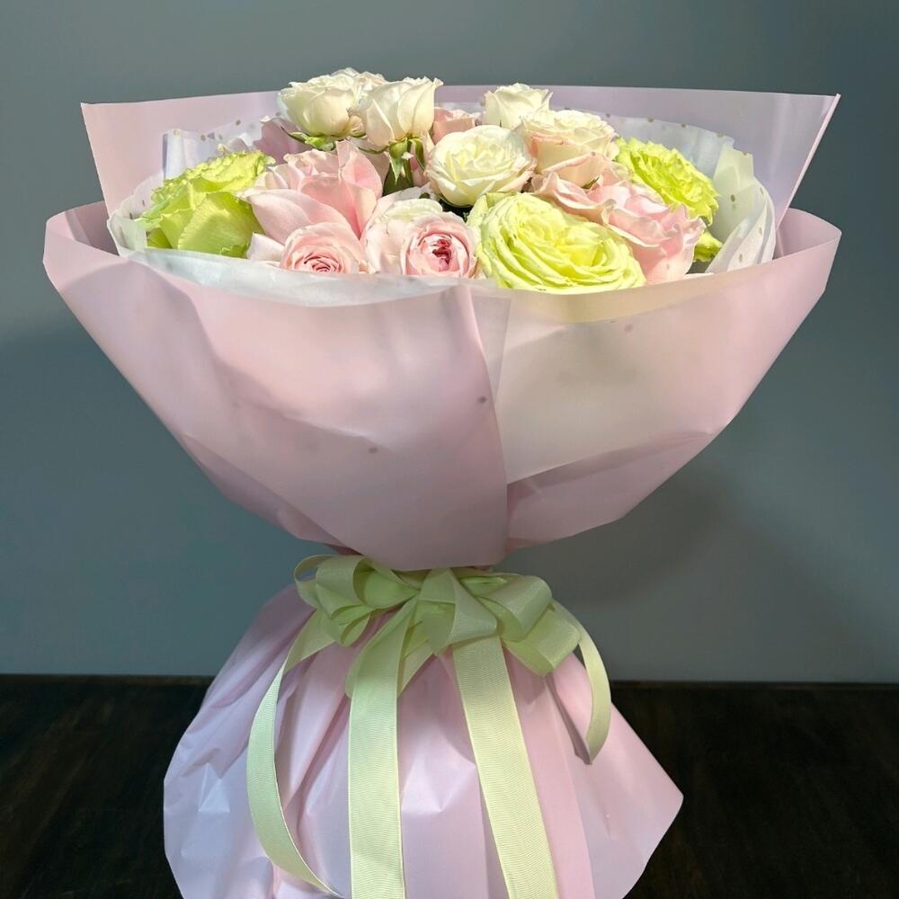 Гвоздики, Кустовые розы, Лизиантусы, Пионовидные розы, Розы