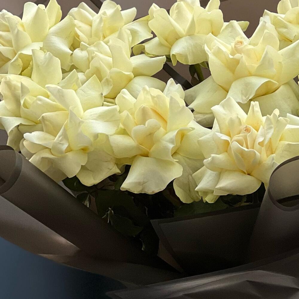 Бомбический букет из белых роз в стильном оформлении станет замечательным подарком для ваших близких