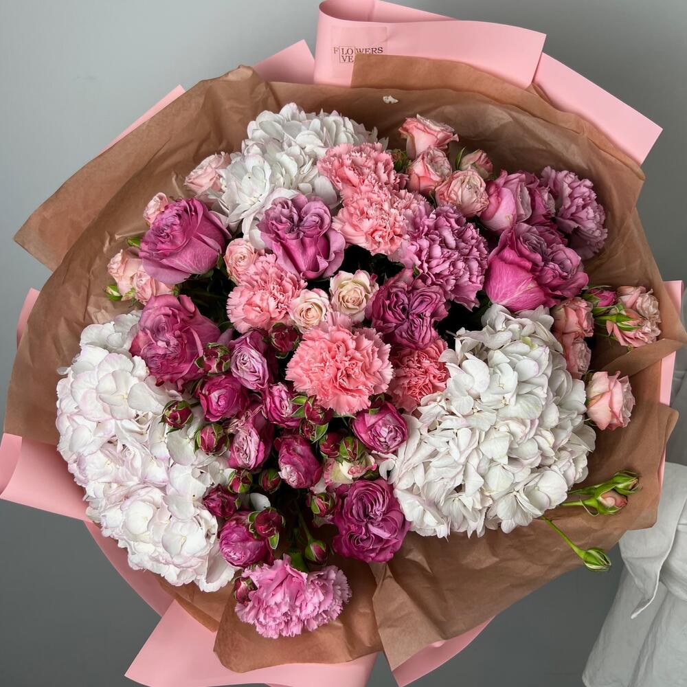 Гвоздики, Кустовые розы, Лизиантусы, Пионовидные розы, Розы