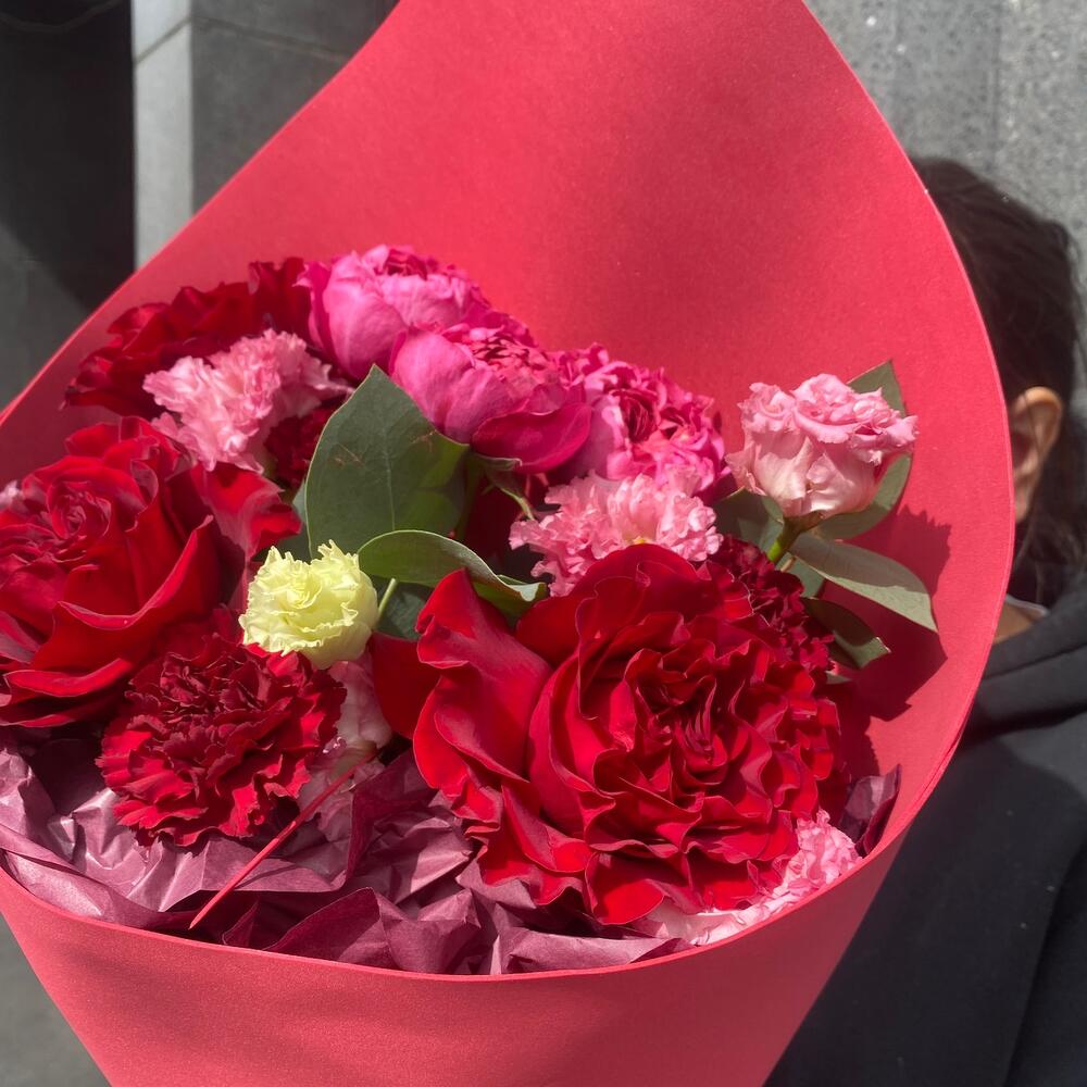 Гвоздики, Кустовые розы, Пионовидные розы, Розы